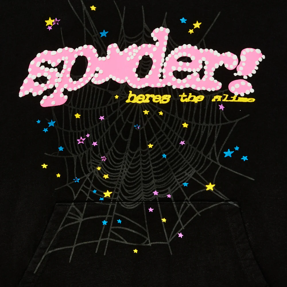 SP5DER motif, web and star prints on front.Ā